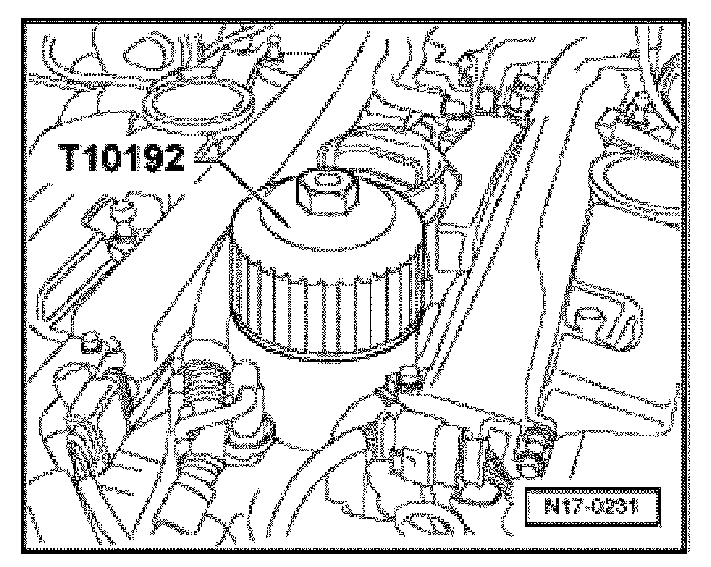 - Cover area surrounding oil filter cover, e.g. with Oil absorbent cloth VAS 6204/1.