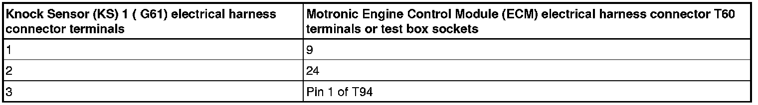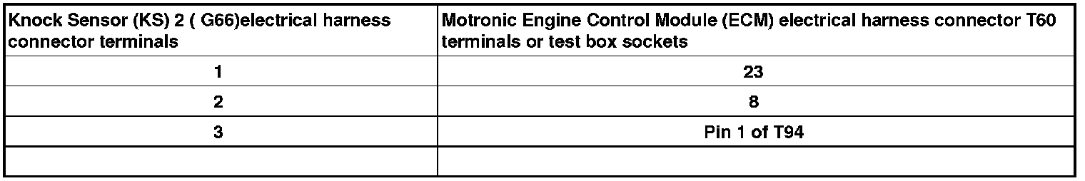 - Using a Multimeter, Check the Knock Sensors' electrical harness connectors to the Motronic Engine Control Module (ECM) (J623) electrical harness connector T60 for an open circuit.