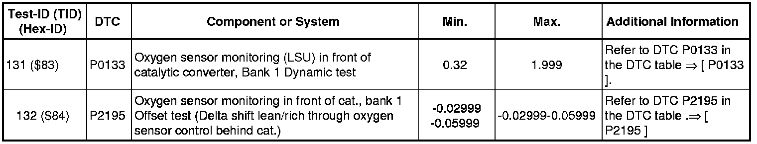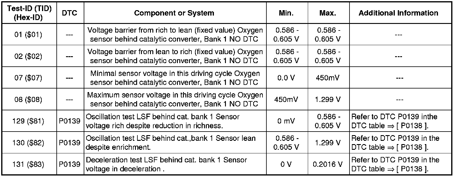 -Test-ID 01 ($01): Oxygen sensor in front of catalytic converter, Bank 1 (Bank 1 Sensor 1).