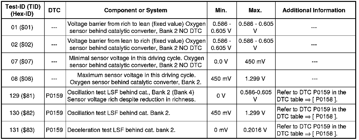 -Test-ID 02 ($02): Oxygen sensor behind catalytic converter, Bank 1 (Bank 1 Sensor 2).