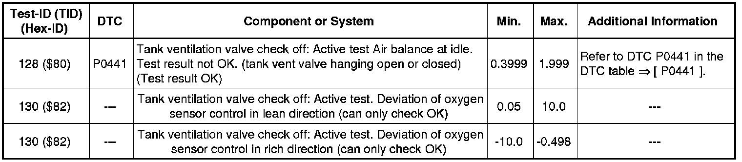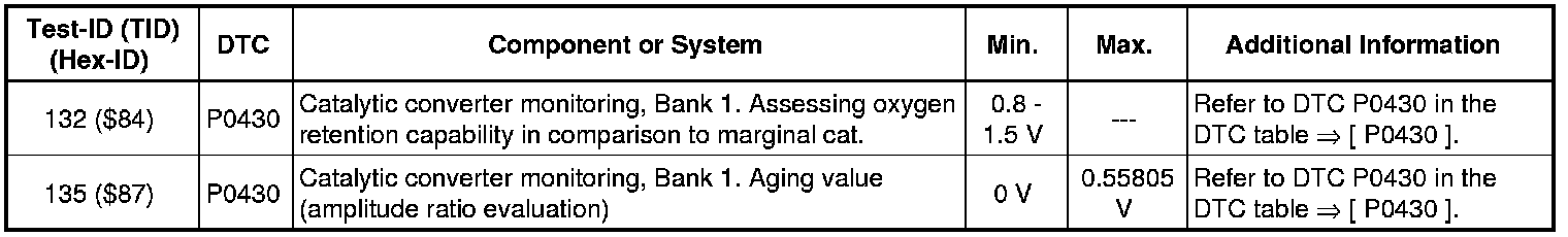 - If any component or system fails to meet the specified values, refer to Diagnostic "Mode 03: Interrogating Fault Memory" to check for stored DTC's or the corresponding diagnostic repair procedure.