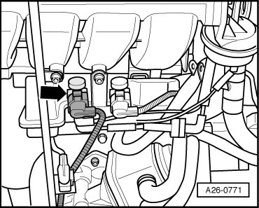 - Disconnect the Secondary Air Injection (AIR) Solenoid Valve (N112) electrical harness connector - arrow -.
