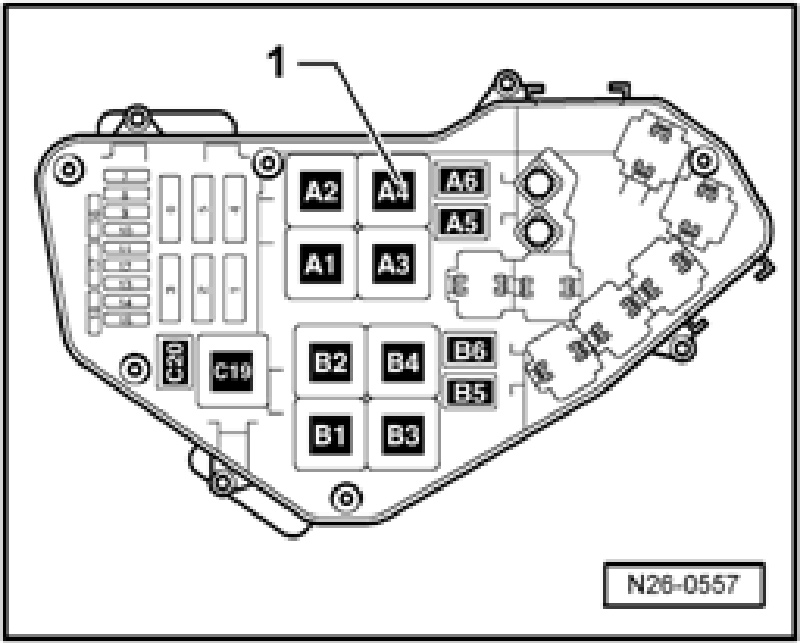 - Secondary air injection pump relay J299 - 1 - is inserted in socket "A4" .