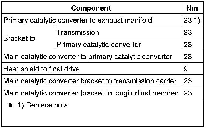 - Remove nuts - 1 to 3 - and remove right primary catalytic converter.