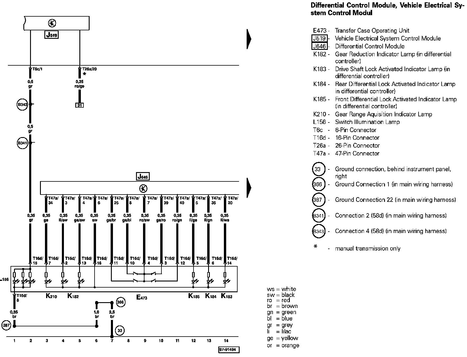 Fuse Identification: Starting with fuse 23, fuses in the fuse holder are identified with an additional numeral 2 added to the number when shown in the wiring diagram (i.e. fuse 23 in the vehicle becomes 223 in the diagrams, fuse 24 becomes 224, and so on).