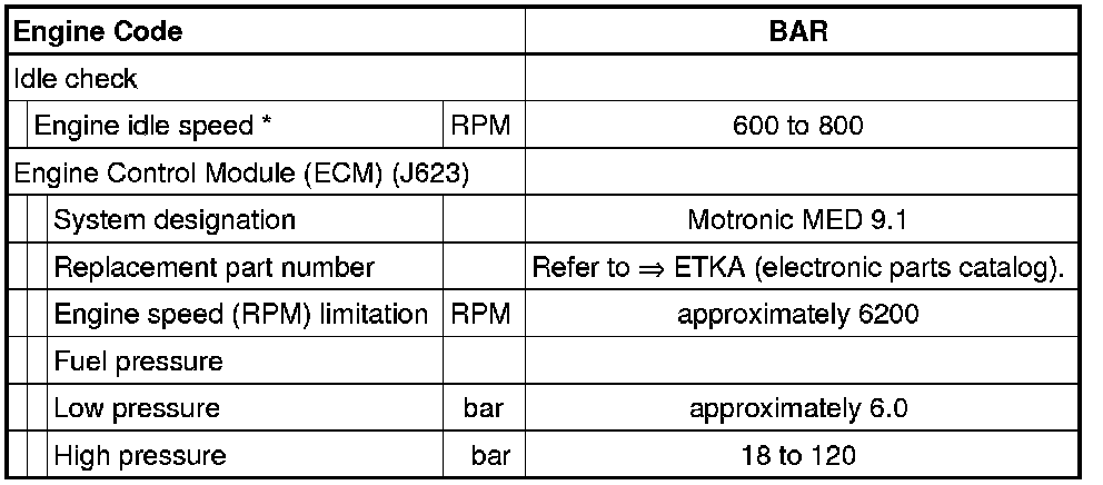 Idle Speed: Specifications