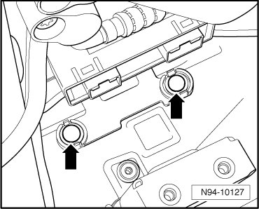 - Disengage retaining tabs - arrows - and remove Parking Aid Control Module (J446) from bracket.