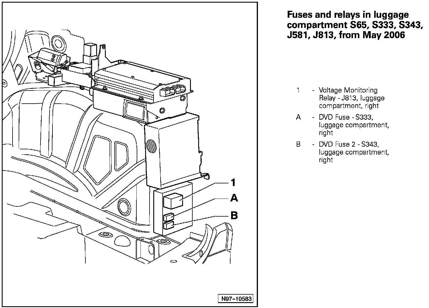 Fuses And Relays In Luggage Compartment S65, S333, S343, J581, J813: