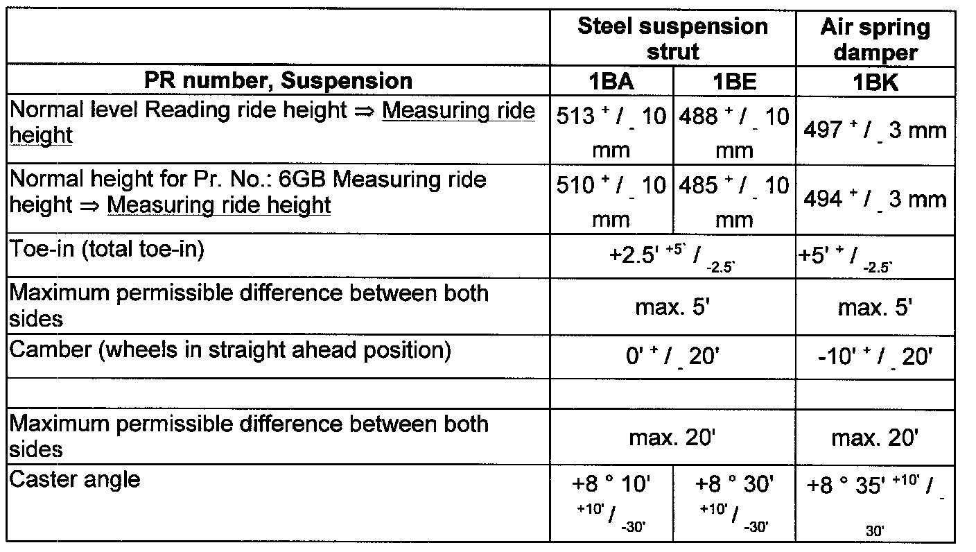 Wheel Alignment Specifications