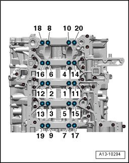 Final pass: Tighten highlighted block/guide frame sealing surface bolts 9 Nm in diagonal sequence