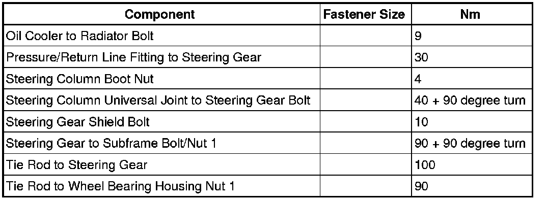 Steering Column Bolt/Nut Tightening Sequence and Specifications