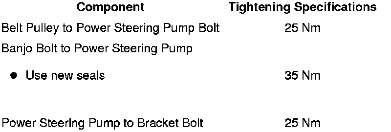 Power Steering Pump Tightening Specifications, 3.2L, 3.6L and 4.2L Engines
