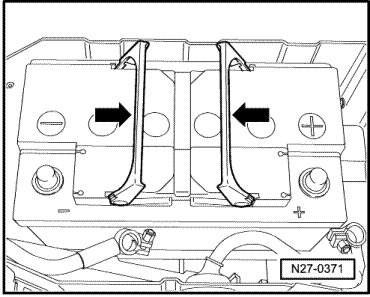 When disconnecting battery, procedure must always be followed as described in the repair information --> [ Battery, with Auxiliary Battery or Two-Battery Layout, Disconnecting