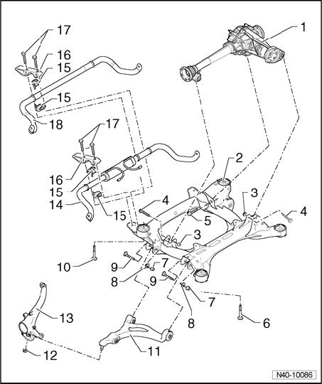 ^ If components with bonded rubber bushings were replaced or bolts/nuts on these components were loosened, corresponding wheel suspension must be lifted into curb weight position.