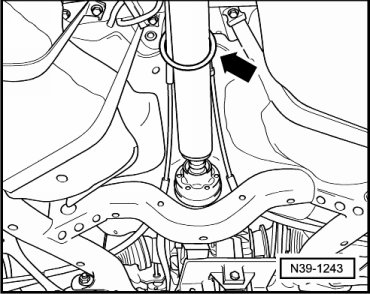 - Disconnect rear driveshaft from rear final drive and secure - arrow -. Refer to --> [ Rear Driveshaft ] Rear Driveshaft.