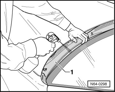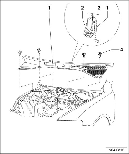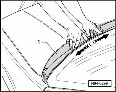 Starting at the edge of the windshield, remove the plenum chamber cover - 1 - at a right angle from the mounting slit on the lower edge of the windshield.