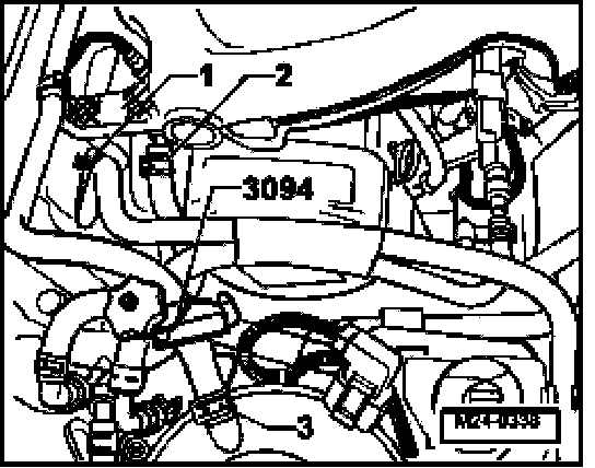 - Pull off hoses -1-, -2- and -3-.