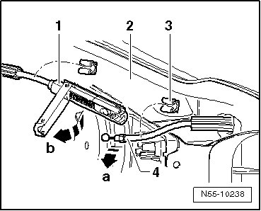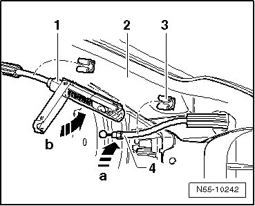 - Open release coupling - 1 - upward in - direction of arrow b - and remove cable - 4 - in - direction of arrow a - from coupling - 1 -.