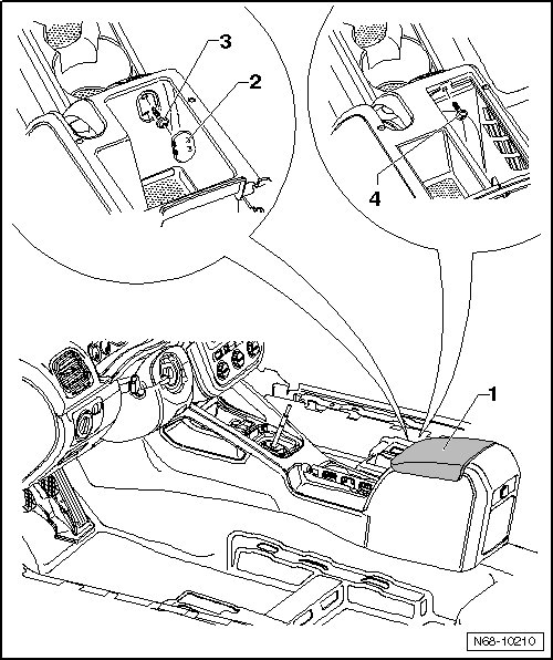 - Remove storage compartment - 3 - from center console and (depending on vehicle equipment) disconnect wiring harnesses.