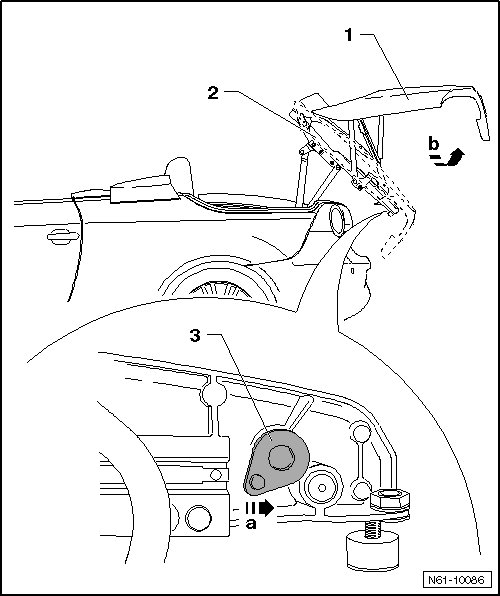 - Open the left and right locks - 3 - located under the installation frame trim - 2 - by pressing in - direction of arrow a -.