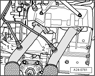 - Disconnect the electrical connectors - 1 and 2 - for the Heated Oxygen Sensor (HO2S) (G39) and HO2S 2 (G108).