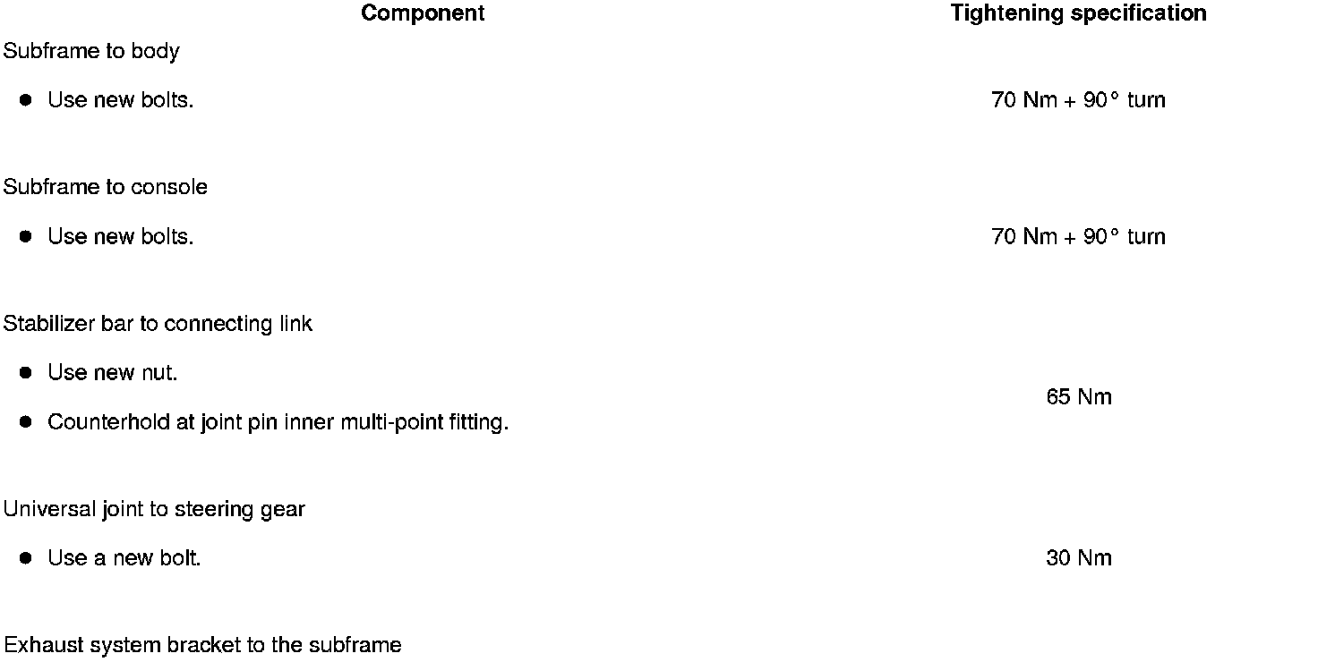 - Subframe, securing, refer to => [ Subframe and Consoles, Securing ] Front Suspension.