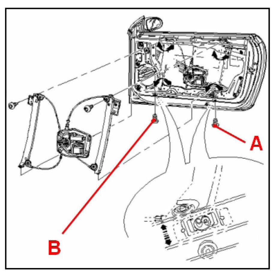 2) Mounting bolts for window regulator(s) to door are loose.