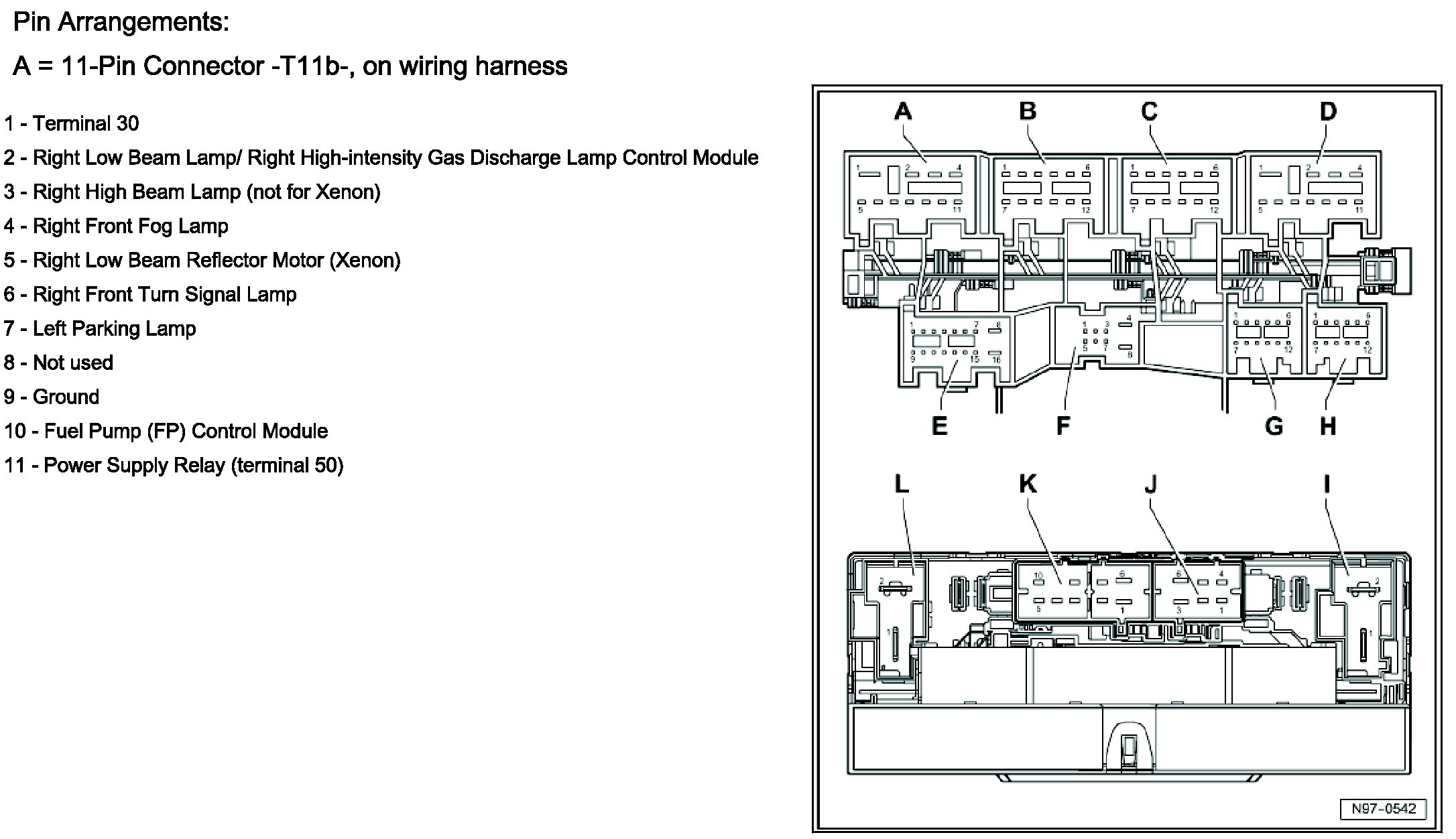 A = 11-Pin Connector -T11b-, On Wiring Harness: