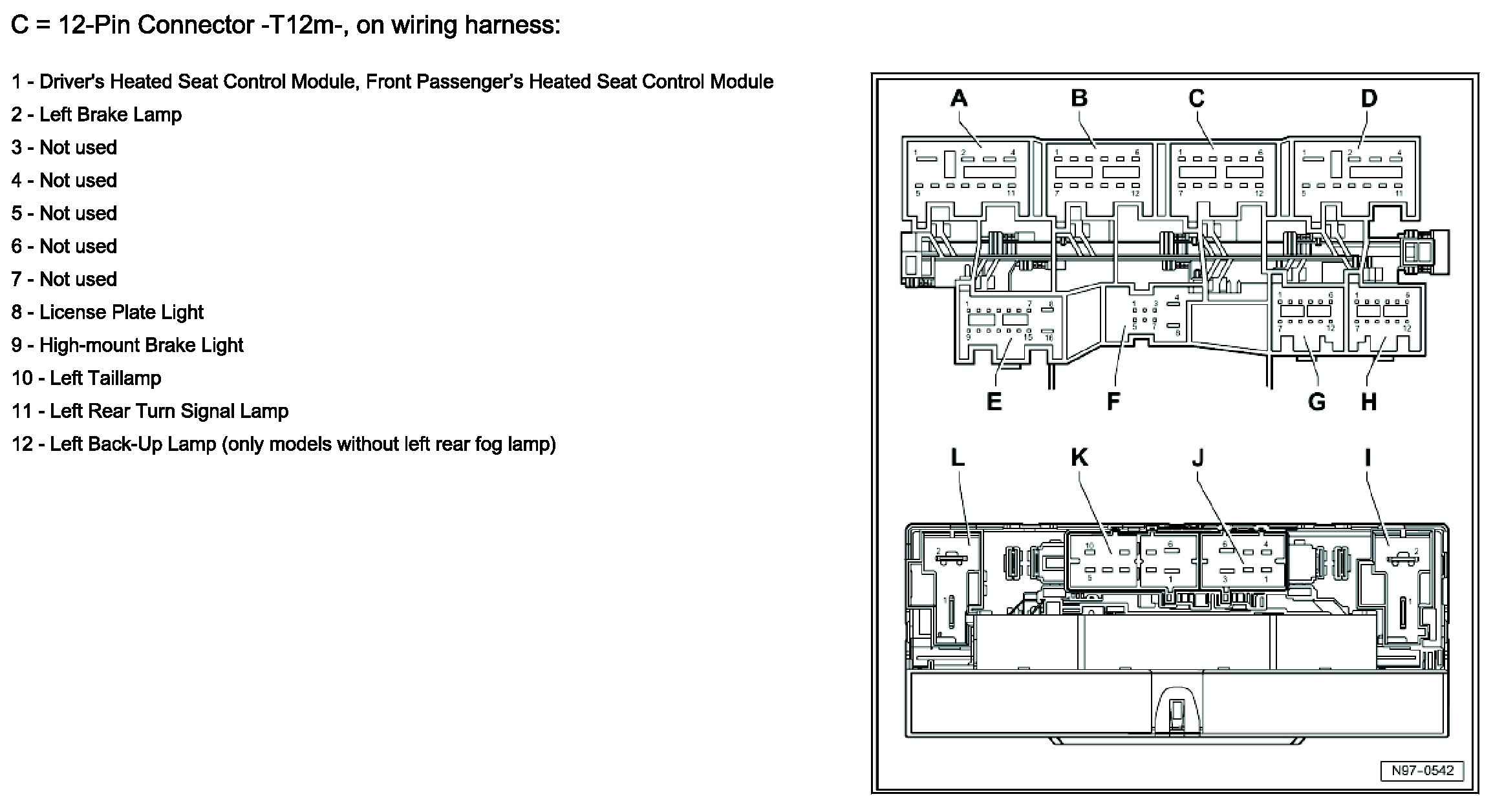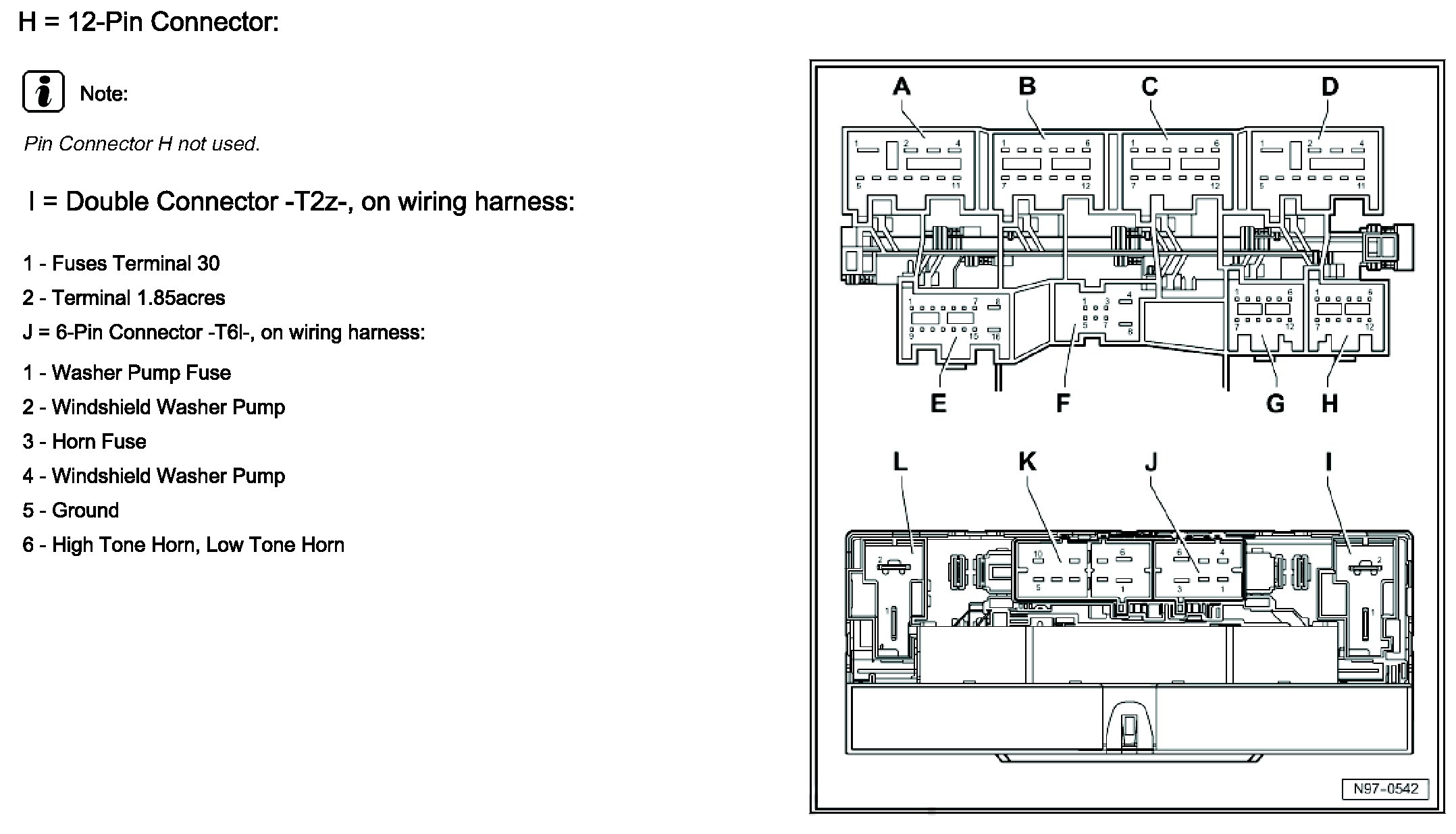 H = 12-Pin Connector, I = Double Connector -T2z-, On Wiring Harness: