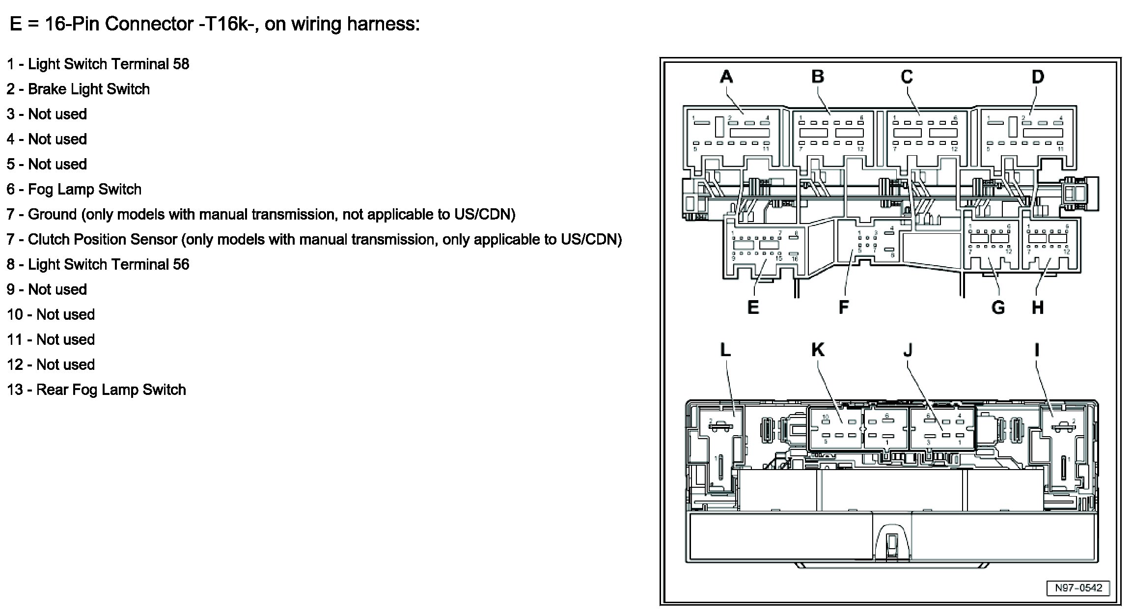 E = 16-Pin Connector -T16k-, On Wiring Harness Part 1: