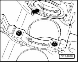 ^ Using a drift diameter 4 mm, press the oil spray jet toward the engine bearing and out.