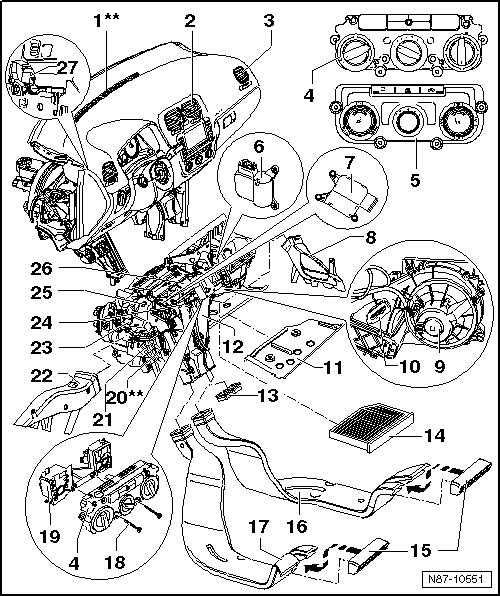 12 - Evaporator Vent Temperature Sensor -G263- or Evaporator Temperature Sensor -G308- => [ Evaporator Vent Temperature Sensor and Evaporator Temperature Sensor ] See Image Below.