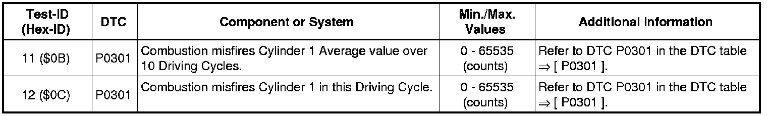Monitor-ID 162 ($A2): Misfire Cylinder 1 Data