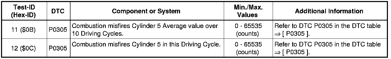 Monitor-ID 166 ($A6): Misfire Cylinder 5 Data