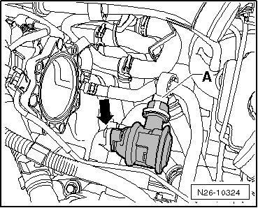 - Disconnect the pressure hose - A - at the combination valve for Secondary Air Injection (AIR).