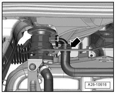 - Seal the hose leading to right combination valve - arrow - using a hose clamp.