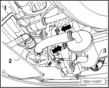 - Disconnect the vacuum line - 1 - and ventilation lines - 2 and 3 -.