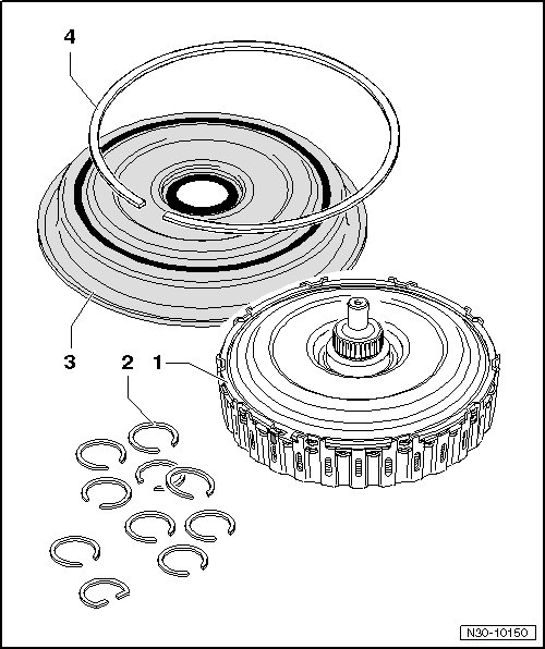 • The cover on a new clutch is secured with a circlip.