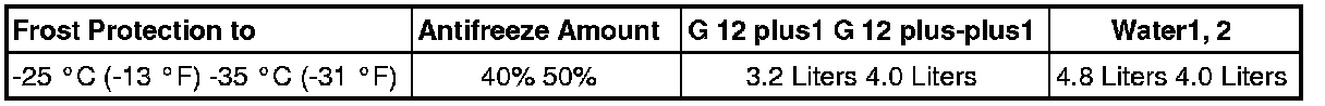 • If for climatic reasons a greater frost protection is required, the amount of coolant additive of can be increased, but only up to 60% (frost protection to about -40 °C (-40 °F)), as otherwise frost protection is reduced again and cooling effectiveness is also reduced.
