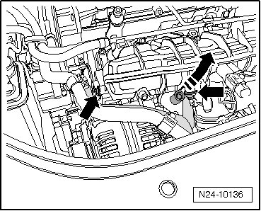 Disconnect the vacuum lines - arrows - from the intake manifold and from cylinder head cover.