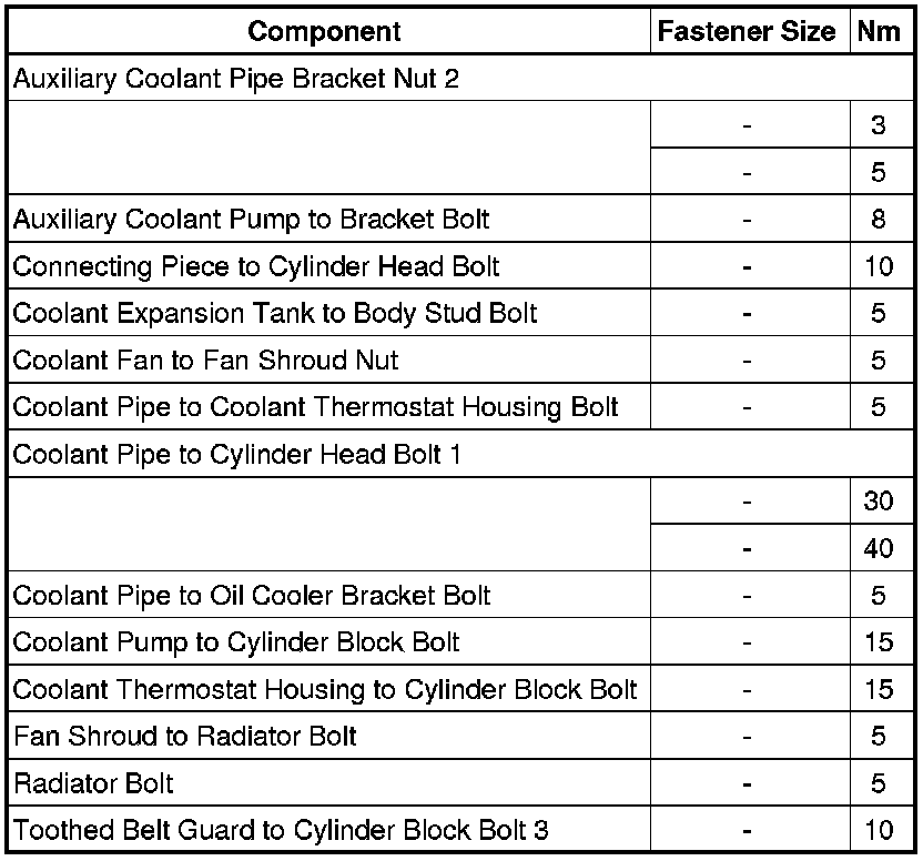 • 1 For bolt tightening clarification, refer to => [ Cooling System Components Overview, Engine Side ] Cooling System Components Overview, Engine Side and see - items 1 and 2 -.