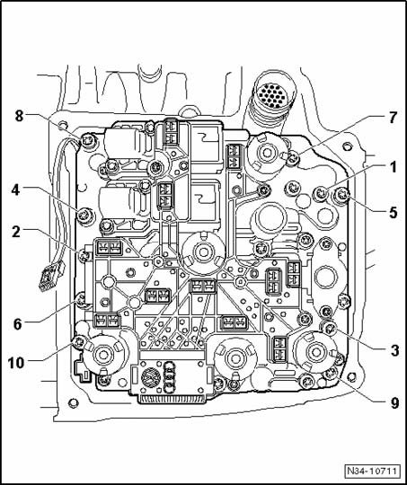 - Then diagonally tighten all 10 - bolts - to 5 Nm, finally rotate an additional 90° in same sequence. Begin with bolt -1-.
