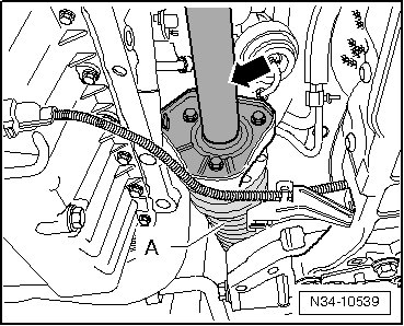 • Check if an intermediate shaft - arrow - is installed between the right drive axle - A - and the transmission.