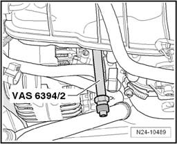 - Coat adapter VAS 6294/2 sealing point with clean engine oil and install it in the fuel rail. Tighten to 22 Nm.