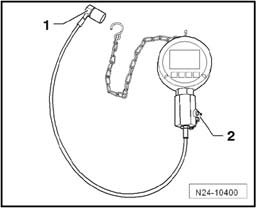 - Compare pressure displayed by the pressure sensor tester VAS 6394/1 with the actual value displayed on the vehicle tester