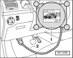 - Plug diagnostic cable VAS 5051/1 connector - 2 - or VAS 5051/3 into vehicle Data Link Connector (DLC).