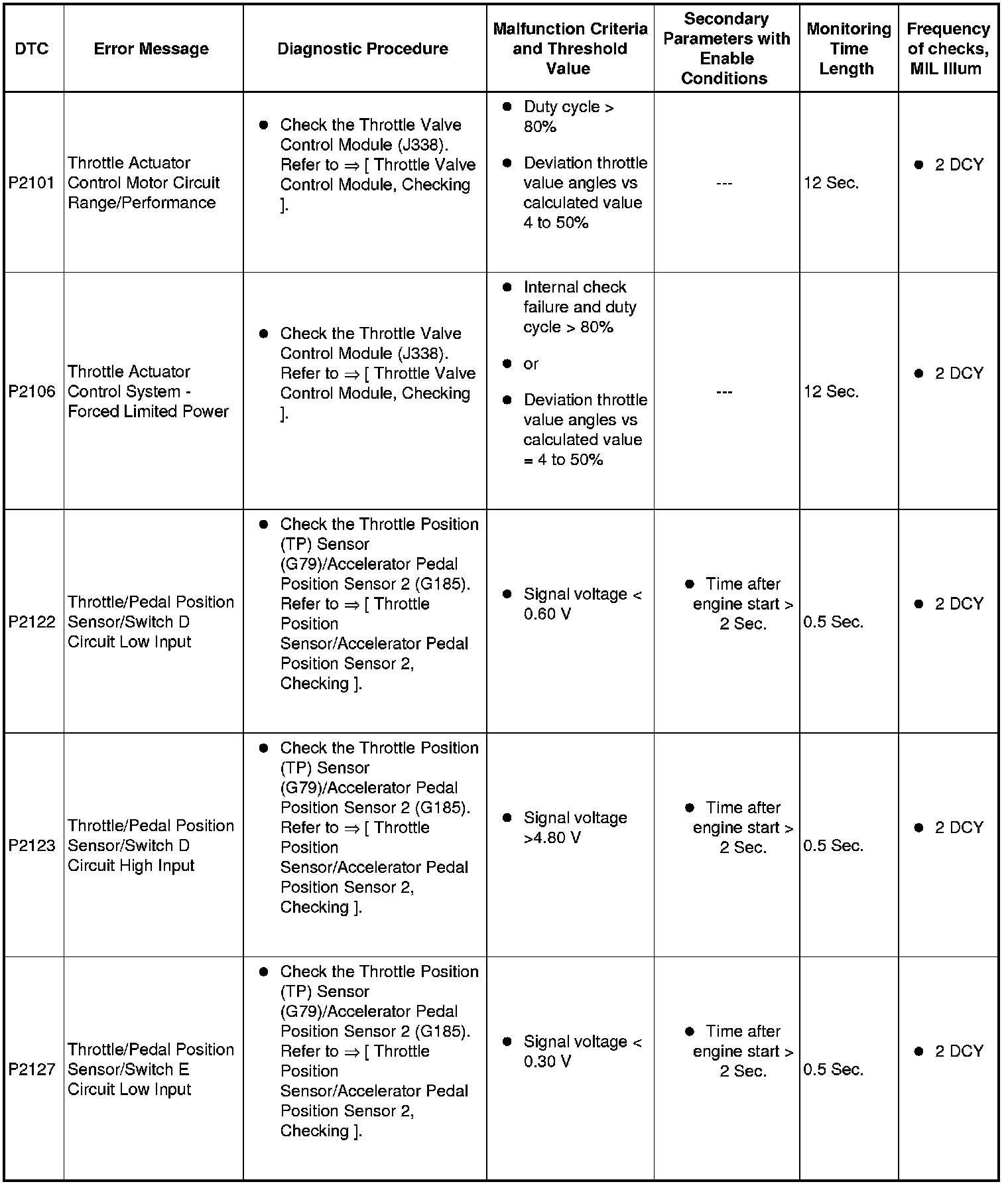 SAE P2xxx Diagnostic Trouble Codes