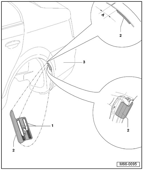 - Attach the protective cover - 2 - at a distance of about 28.7 mm 28.7 mm - A -, where the highest point of the cover - 2 - and the upper edge of the bumper cover - 3 - are used as a reference.