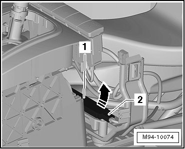 - Disconnect the connector - 2 -. Remove the access/start authorization antenna 1 in vehicle interior - 1 -.