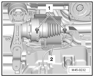 - Remove the bolts - 1 - and remove the drive axle cover - 2 -.